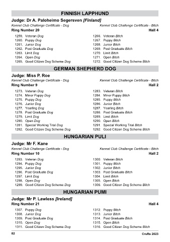 1262. Post Graduate Dog 1269. Post Graduate Bitch